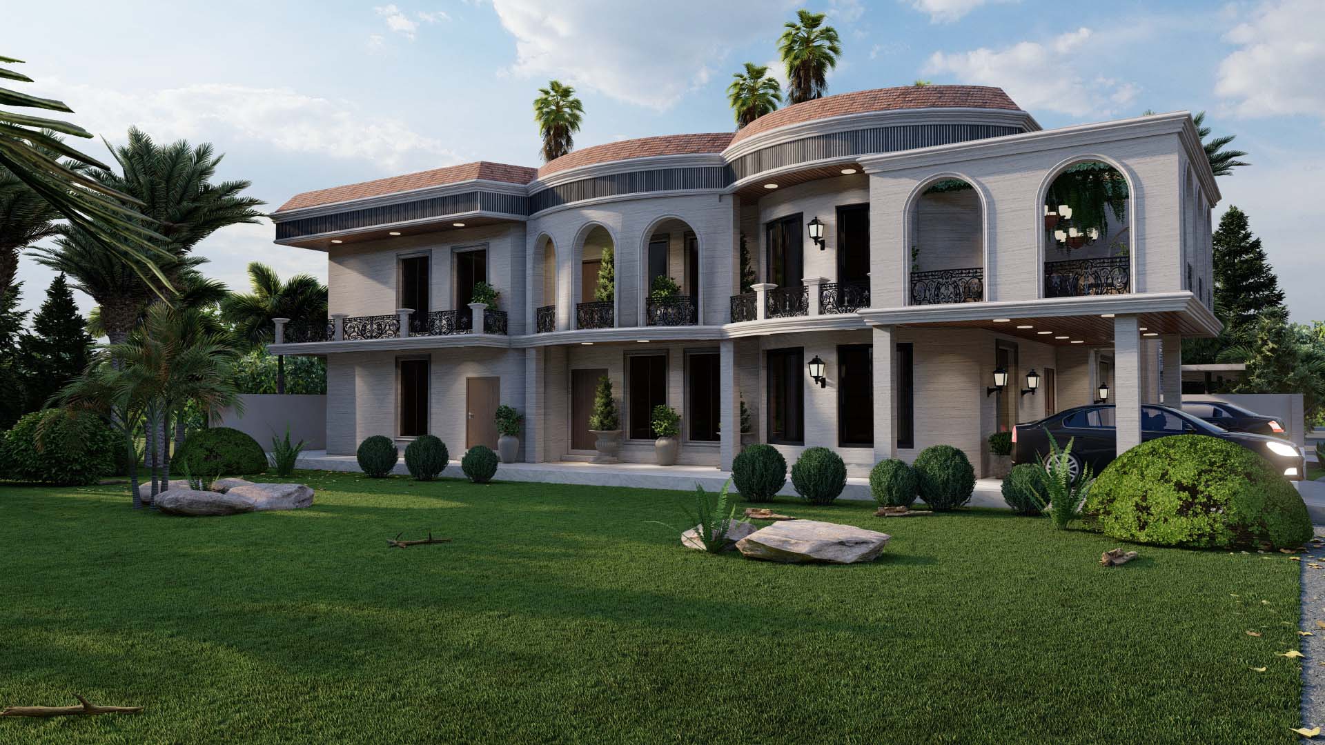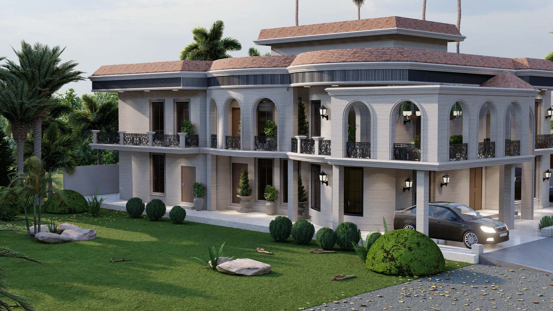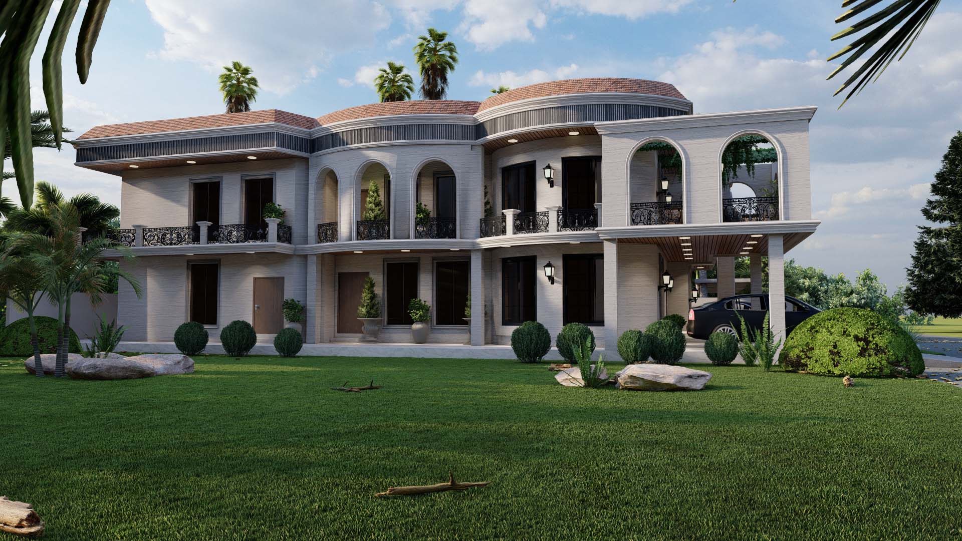 Casa Royale captures the essence of timeless elegance through its neoclassical-inspired architecture. The design features grand arched openings, intricate wrought-iron balconies, and soft-toned stone textures that reflect luxury and sophistication. The symmetrical façade, accentuated by classical columns and detailed cornices, gives the house a majestic presence while maintaining a sense of harmony and proportion. Warm lighting and lush greenery enhance the serene, inviting ambiance of the exterior. This residence blends traditional grandeur with modern functionality a perfect example of neoclassical architecture reimagined for contemporary living.