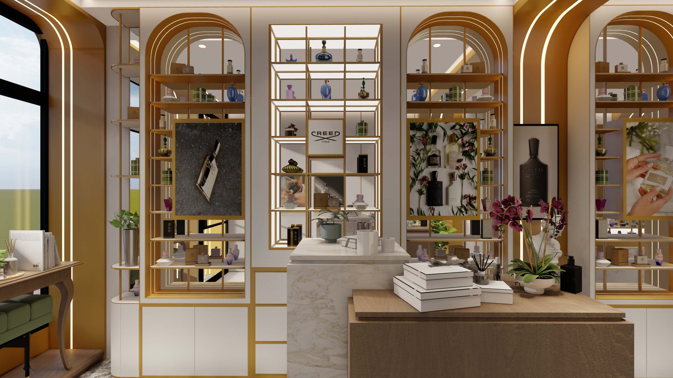 The Creed Store Outlet at Beverley Center, Islamabad embodies timeless luxury and refined modernity. The design features a rich gold and white palette, complemented by marble textures and ambient lighting, creating a sophisticated and high-end retail experience. Custom arched display walls, sleek shelving, and mirror highlights enhance product presentation while maintaining an elegant visual flow. Every corner is curated to reflect Creed’s legacy of craftsmanship and exclusivity, offering customers an immersive luxury environment. This outlet perfectly balances modern minimalism with classic opulence, redefining the retail experience for The House of Creed in the heart of Islamabad.
