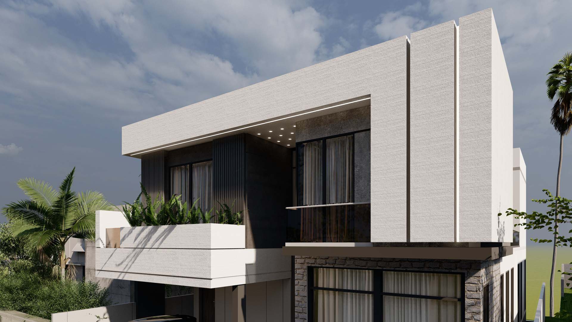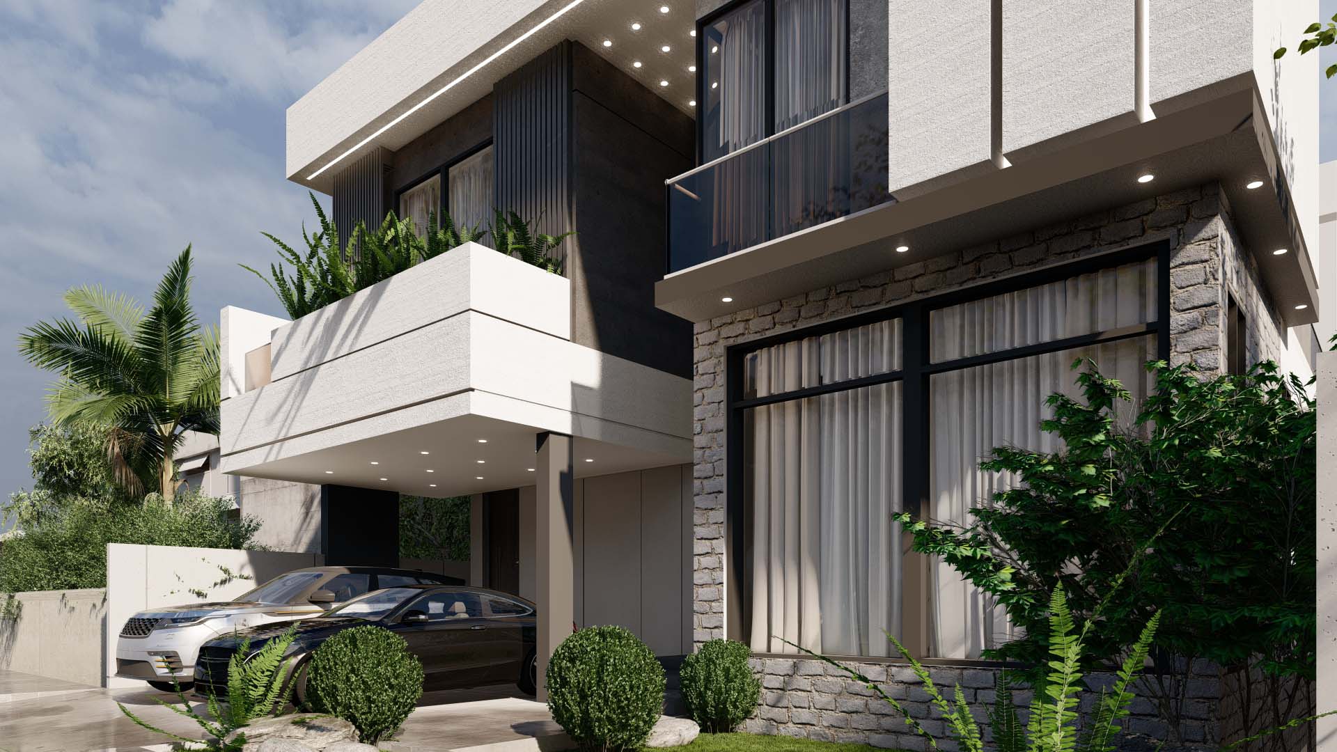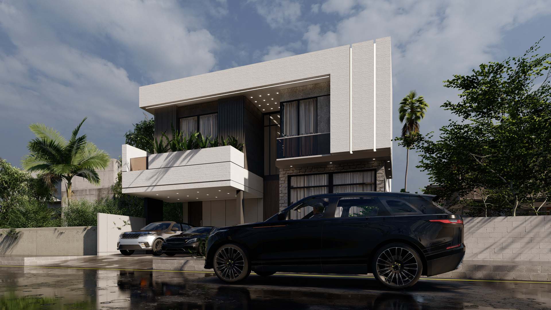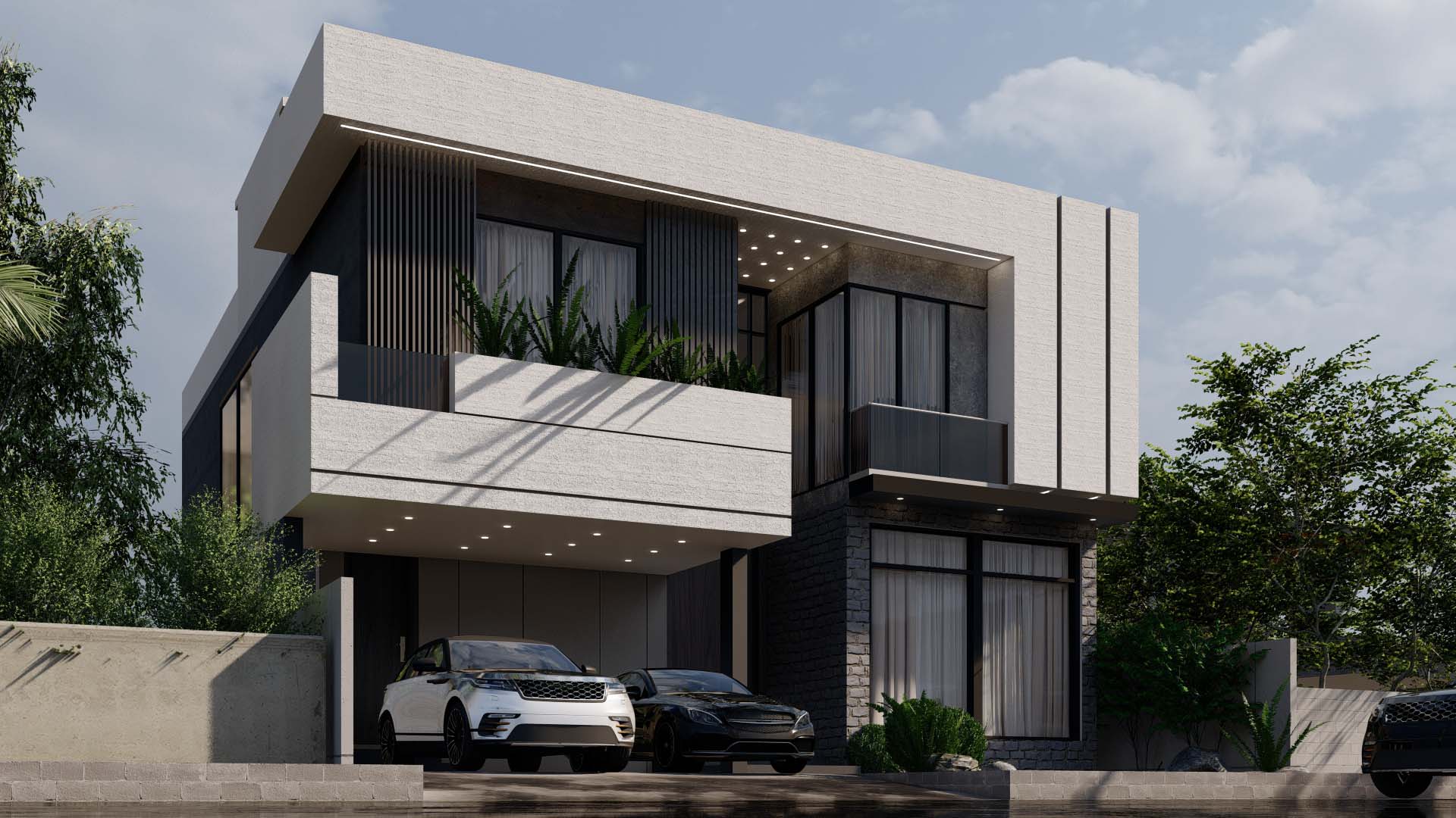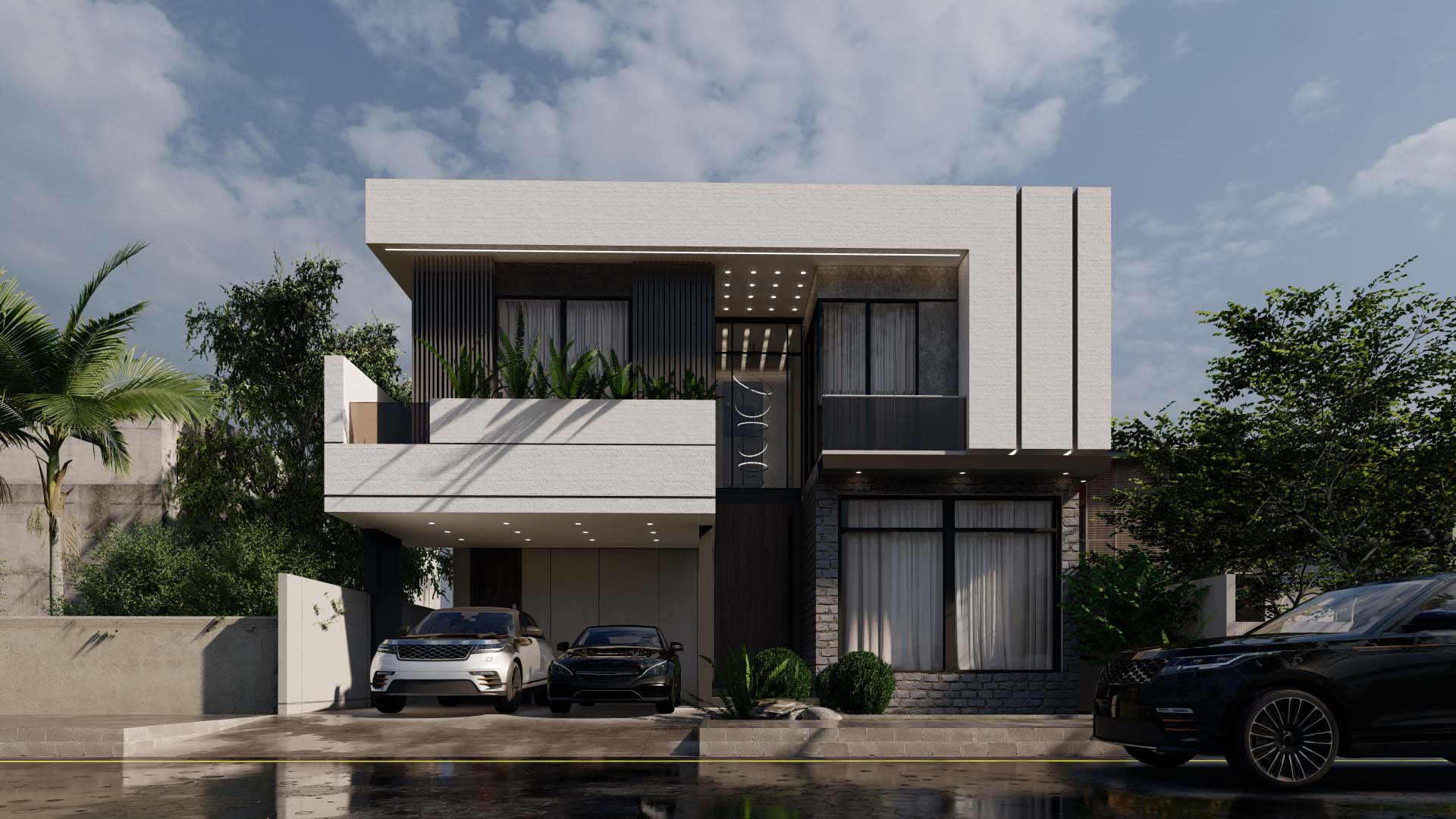 The Modern Edge is a stunning contemporary house design in DHA 2 Islamabad, featuring sleek lines, balanced proportions, and a luxurious modern aesthetic. The exterior combines textured white finishes, dark cladding, and stone accents to create a bold architectural statement. Expansive glass windows, recessed LED lighting, and lush greenery enhance the home’s elegance and comfort. Perfect for modern family living, this DHA 2 modern house design blends sophistication, functionality, and timeless style— setting a new standard for contemporary architecture in Islamabad.