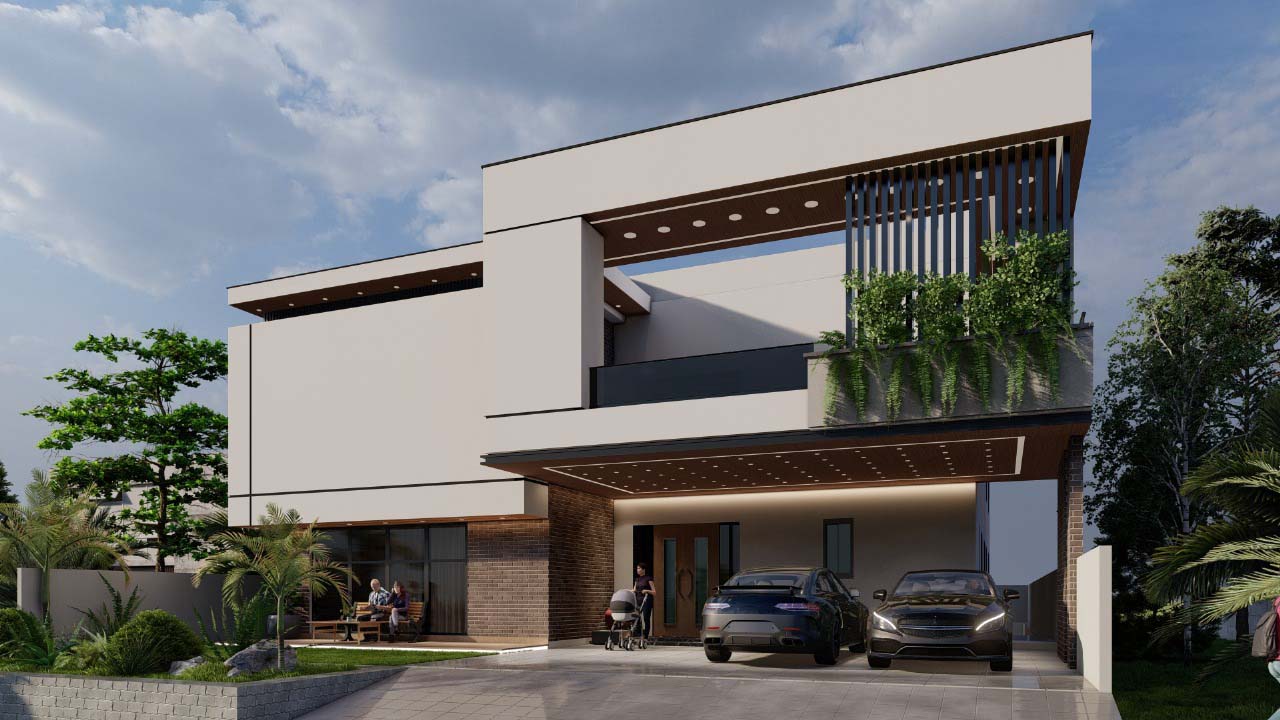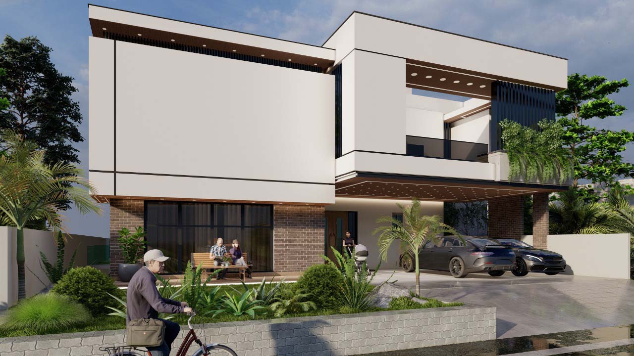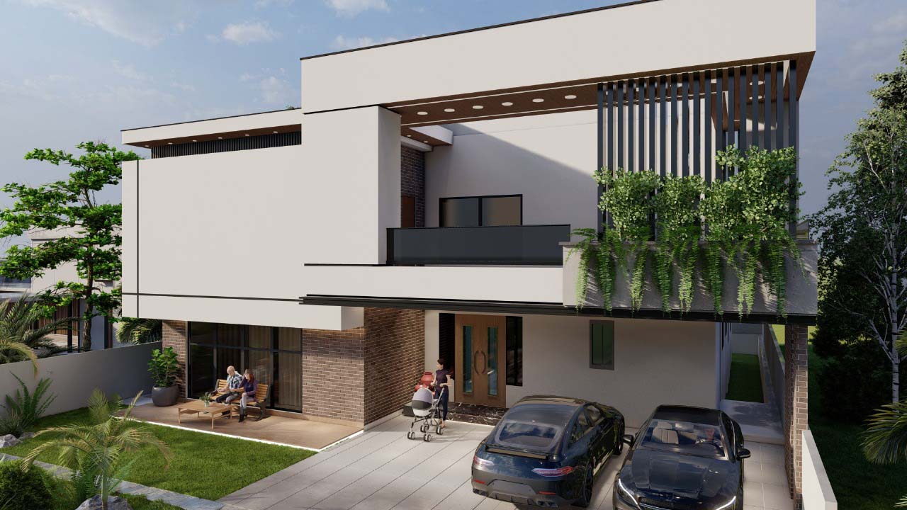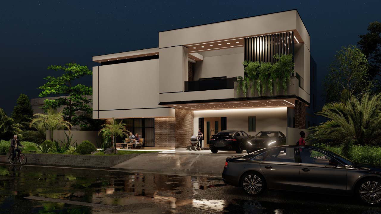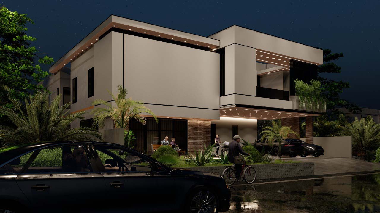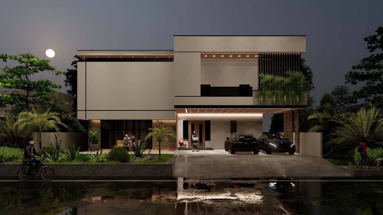 Villa bold is an exceptional example of luxury home design, perfectly combining clean modern lines with natural accents to create a welcoming and upscale atmosphere. Featuring a striking flat-roofed profile, expansive windows, and thoughtfully integrated greenery, this contemporary residence embraces both sophistication and sustainability. The generous use of outdoor lighting enhances the façade’s architectural details during the night, while the open-plan garage and landscaped front yard offer both practicality and curb appeal. Ideal for families seeking modern comfort, elegance, and energy efficiency, this residence stands out as a top choice for those desiring a luxury home with premium outdoor living spaces and serene surroundings.